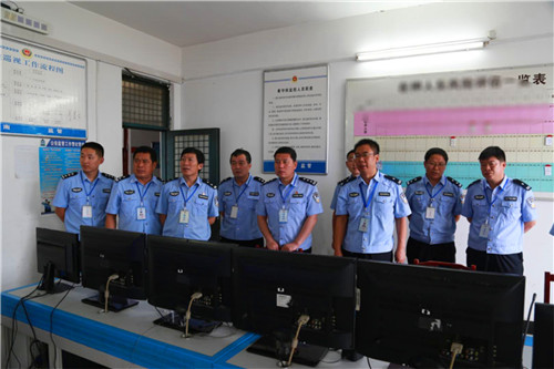 陳鳳祥在看守所監管大隊長郭景靈、教導員譚林生的陪同下,參加了集體交接班,并先后來到收押大廳、監控室、巡視道、監區、監控中心等重點部位進行了實地查看,要求全體監所民警嚴格落實各項管理工作制度,全力保障監所安全。