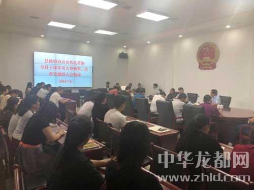 中華龍都網訊(周口報業全媒體記者李瑞才 通訊員 普德連)7月6日下午,鹿邑縣政府辦公室召開會議,傳達貫徹全縣干部作風大整頓第三次查處通報和創文創衛會議精神。要求全體黨員干部要提高政治站位,樹立責任意識,增強使命觀念,對標整改;要敢擔當,真干事,干實事,工作落實到位不走樣,以實際工作成績檢驗作風紀律整頓效果。