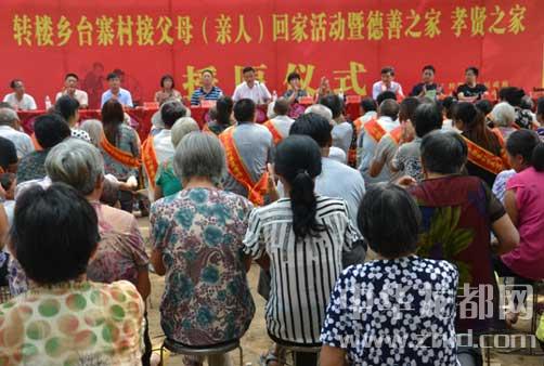 中華龍都網(wǎng)訊(周口報(bào)業(yè)全媒體記者 馬治衛(wèi) 通訊員 徐偉)太康縣轉(zhuǎn)樓鄉(xiāng)臺(tái)寨村接父母(親人)回家活動(dòng)暨德善之家孝賢之家授匾儀式于7月6日在臺(tái)寨村村北小樹(shù)林舉行。