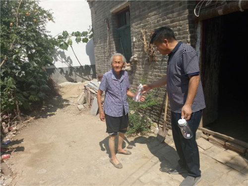 當天,張照營冒著酷暑走遍前進村所聯系的6戶貧困戶家中送“清涼杯”。和張照營一樣,在7月19日這天,太康縣委宣傳部、太康縣文廣新局的幫扶人員走村入戶,來到所幫扶的貧困群眾家中,開展扶貧扶志送“清涼”活動。