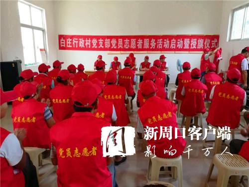 8月3日,鄲城縣虎崗鄉白莊行政村黨支部舉行黨員志愿者服務活動暨授旗儀式,來自全村的30名黨員志愿者頭戴小紅帽、身著志愿服,面對黨旗集體宣誓,共同發出倡議,要不忘初心,牢記使命,積極為家鄉文明發展譜寫新篇章。