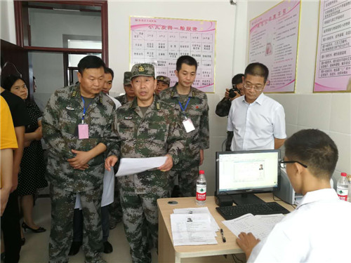 8月7日,周口軍分區(qū)司令員王善沖到扶溝縣人民醫(yī)院現(xiàn)場檢查指導征兵體檢工作,看望體檢工作人員和應(yīng)征青年。
