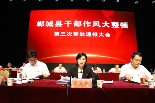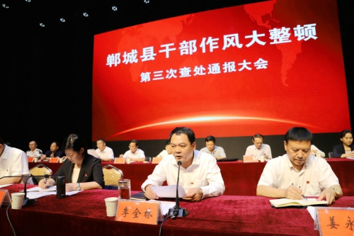 8月15日下午,鄲城縣召開干部作風大整頓第三次查處通報大會。貫徹全市干部作風大整頓查處通報會議精神和縣委十二屆四次全會暨縣委工作會議精神,通報典型案例,宣布處理決定,傳導工作壓力,夯實工作責任,為進一步推進各項工作任務落實、打好打贏脫貧攻堅戰(zhàn)提供堅強有力的作風保障。縣委書記羅文閣發(fā)表講話,縣長李全林主持。全縣副處級以上領導干部和縣、鄉(xiāng)、村各級各部門負責人參會。