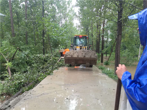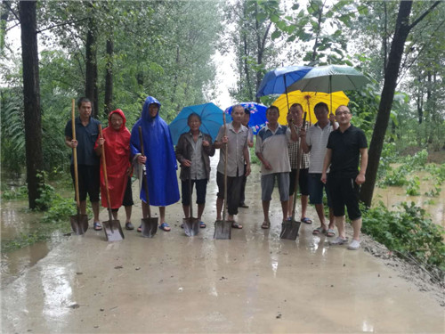 8月19日早7點,陳留張駐村工作隊長李成功、村副主任張建靈發現險情后,便開始緊急會商,提出科學搶修方案。最后確定,調用本村的鏟車,利用本村商砼站的石料,組織本村的村民,迅速趕赴事發地點開展搶修工作。