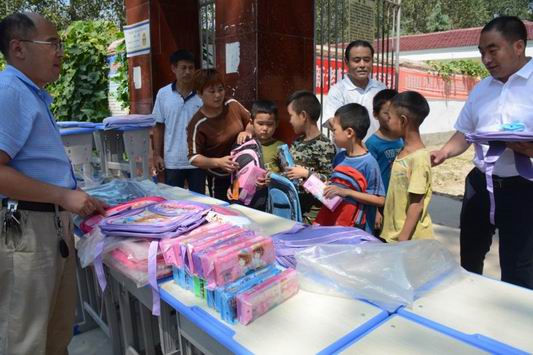 8月27日上午11時許,商水縣平店鄉(xiāng)大朱莊村小學(xué)大 門外,突然停放一輛廂式貨車。看到有單位送來了“開學(xué)禮”,學(xué)校老師和學(xué)生滿臉興奮 、七手八腳和來人一塊卸下一些嶄新的課桌凳、書包文具等學(xué)習(xí)辦公用品。