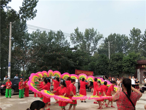 儀式前,撞寨行政村文化廣場院內樂鼓喧天。撞寨行政村村的廣場舞表演隊、大良行政村的腰鼓表演隊、常樓的竹馬旱船表演隊、前何行政村的扇子舞表演隊等6個村扶貧政策文藝宣傳隊進行了精彩的文藝節目表演,烘托了喜慶的氣氛。