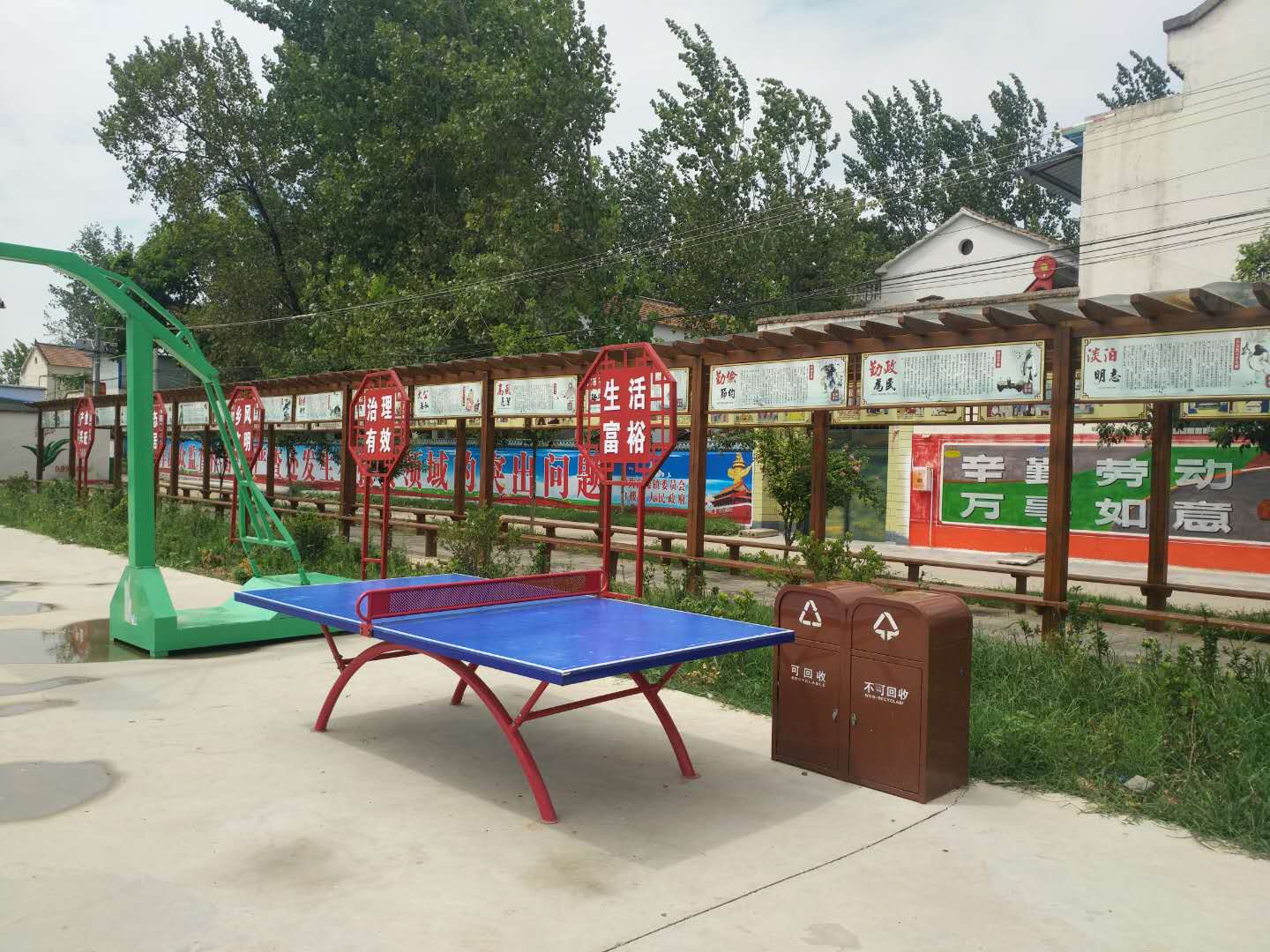 在近2000平方米的文化廣場上,南側聳立著高高的旗桿,上方五星紅旗迎風飄揚;北側一字排開牽引器、漫步機、 健騎機、扭腰器等健身器材,五六位鶴發童顏的老年人正樂呵呵地鍛煉;東側設立的籃球架、乒乓球臺正等待放學的孩子前來玩耍;西側新設的木排廊成了村民休閑聊天的好去處。村黨支部書記郝道杰稱,前一段,有村民提出,健身后累了缺少休息的地方。在征求群眾意見的基礎上,他們設置了這個木質排廊。