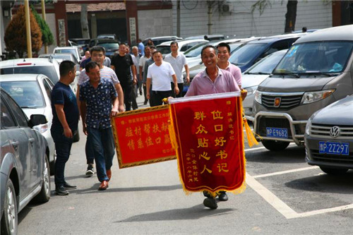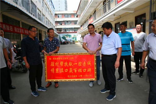 丁喜三代表財政局黨組對位口村民為財政局駐村工作隊贈送錦旗和牌匾表示感謝。稱縣財政局在縣委縣政府正確領導下,對張店鎮位口行政村進行駐村幫扶,三年來的駐村工作取得了很大的成績,也存在很多不足,希望位口村廣大群眾對財政局的駐村扶貧工作多提寶貴意見,同時對新駐村隊員提出高的要求,財政局和位口村干部群眾攜手共同把脫貧攻堅工作做好,確保不拖全縣的后腿,在奔小康的路上不落下一人。