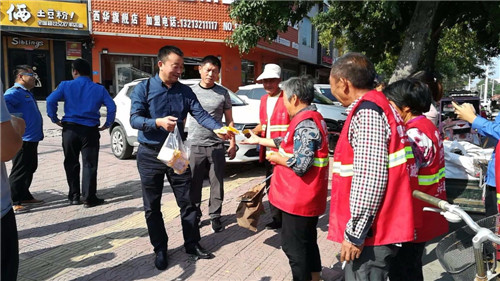 9月24日中秋節當天,西華縣城市管理局班子成員及局屬各單位負責人共同對一線城管工作人員進行現場慰問,向他們送去月餅、礦泉水等節日禮品,在中秋節送上節日祝福。