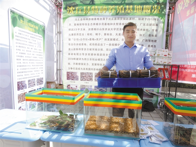 9月22日,沈丘縣舉辦第一個中國農民豐收節慶?;顒?,來自全縣22個鄉鎮(辦事處)的35家農民種植、養殖合作社和家庭農場,展示了槐山藥、黃金梨、冬棗、木瓜、“袖珍”黃瓜、活體蜈蚣、蝎子等120余個品種。