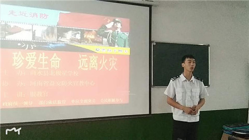 為普及消防安全知識,增強全體師生的火災自防自救能力,9月26日下午,商水縣北極星學校邀請河南益安防火宣教中心銀教官為全體教師講解消防安全知識。