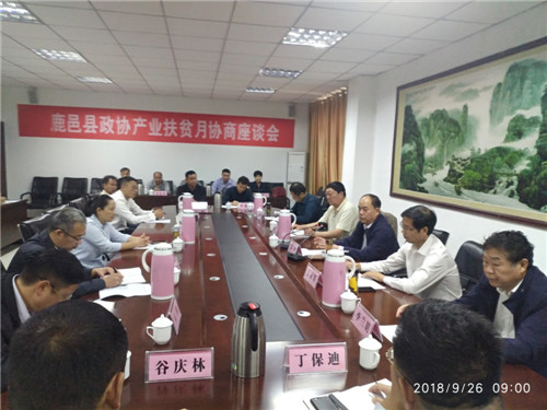 9月26日上午,鹿邑縣政協召開產業扶貧協商座談會。縣政協主席雷申,縣政協黨組副書記胡立柱,縣政協副主席丁顯輝、李蘭明出席座談會。