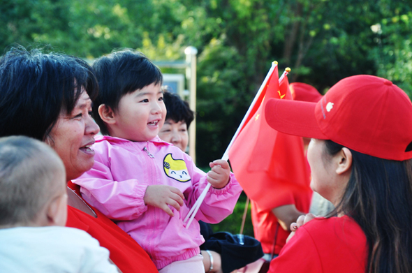“看著滿眼的國旗紅,心情特別激動,真心為祖國的發展與強大感到驕傲和自豪。”10月1日上午,市民王先生帶著家人來到周口公園,感受濃濃的國慶氛圍。