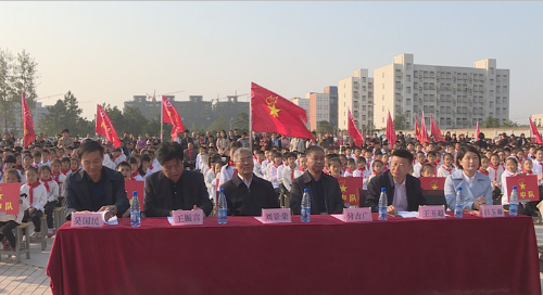 為紀念中國少年先鋒隊建隊69周年,增強少年隊員的光榮感、使命感、責任感,10月12日,鹿邑團縣委、縣教體局、縣人社局在縣實驗第一小學舉行“爭做新時代好隊員 集結在星星火炬旗幟下”主題隊日暨少先隊表彰大會。縣委副書記付吉廣,縣政府黨組成員、縣長助理王玉超,縣關工委副主任劉景榮出席活動。各鄉鎮、城區中小學、縣實驗第一小學等1500余名師生參加了活動。