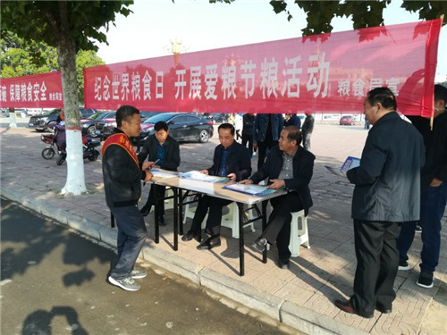 在世界糧食日當(dāng)天,以縣糧食局為牽頭單位,在縣政府及局門口設(shè)立宣傳主會(huì)場(chǎng),制作展板4塊,懸掛條幅32條,出動(dòng)宣傳車6輛,數(shù)十名工作人員統(tǒng)一佩戴宣傳標(biāo)語(yǔ)綬帶,為過(guò)往市民宣傳講解糧食安全知識(shí),并接受全縣種糧大戶、合作社人員現(xiàn)場(chǎng)咨詢。當(dāng)日,主會(huì)場(chǎng)共發(fā)放宣傳資料3000余份,讓廣大市民了解糧食安全、愛(ài)糧節(jié)糧、糧油選購(gòu)、合理膳食等科普知識(shí)。