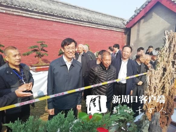 簡樸、熱烈的開幕式結(jié)束后,與會人員饒有興趣地欣賞分布各個展區(qū)的盆景和菊花,精美的盆景和金黃的菊花讓人流連忘返。