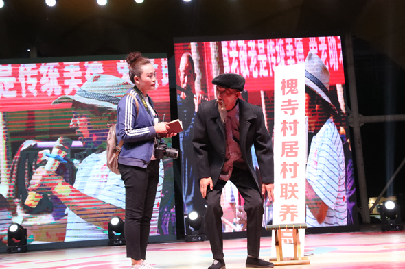 此次晚會與別的演出不同的是,除了歌曲《父親》《感謝祖國感謝黨》,戲曲聯唱、模特走秀《最美不過夕陽紅》等節目,文藝工作者還自編自演了孝老敬老和“五養模式”內容的道情戲《好媳婦》,河南墜子《“五養”贊》,小品《居村聯養點就是俺的家》等節目。