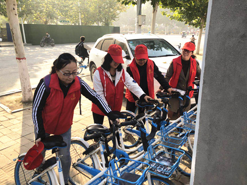 為扎實(shí)推進(jìn)“五城聯(lián)創(chuàng)”工作深入開(kāi)展,調(diào)動(dòng)廣大市民積極參與“五城聯(lián)創(chuàng)”工作的積極性、主動(dòng)性,我市在中心城區(qū)開(kāi)展了為期一個(gè)月的“灑掃庭院迎賓客,文明創(chuàng)建我助力”活動(dòng)。圖①為中國(guó)人民銀行職工在清理小廣告。圖②為中國(guó)人壽職工在清掃路面。圖③為市公路局職工在清理綠化帶。圖④為周口師范學(xué)院師生在整理共享單車(chē)。
