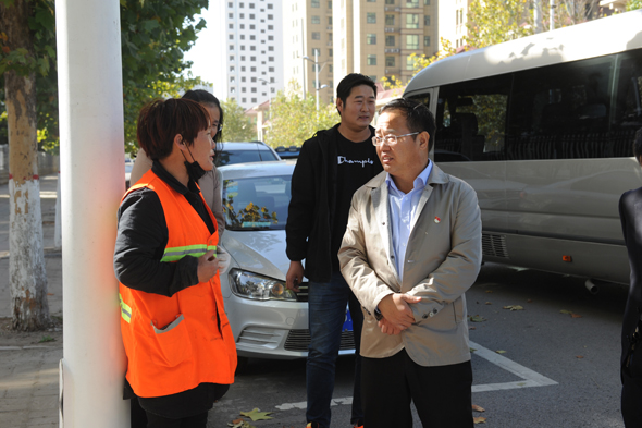 督導中,張建黨親切地與環衛工人進行交談,了解他們的工資收入狀況及是否買了人身保險等情況,并勉勵他們一定要盡職盡責,當好城市的“美容師”。