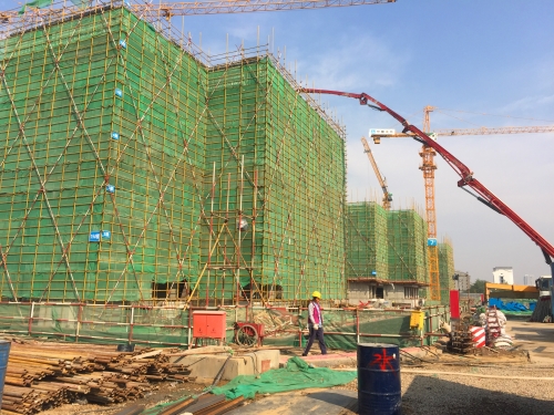 據該項目副總經理王志強介紹,目前該項目南地塊基坑支護主體已經完成,正在進行土方的開挖,已出土約20萬立方米,完成總出土量的50%,地下室底板抗浮錨桿完成30%。中區地塊共13棟住宅,其中2棟已施工至主體7層,2棟施工至主體5層,其余9棟正在進行正負零以下主體施工。一字型商業金街主體施工已經封頂 。萬達展示中心已于10月27日正式對外開放。北地塊商業區正在進行清表工作,公寓區清表工作已結束,樁基已經進場。