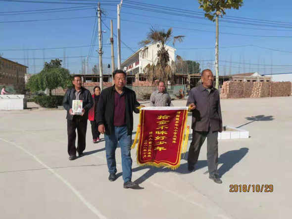 10月27日,王潔萍在去買文具的路上發現了一個錢包,拾起打開一看,里面有身份證、銀行卡等及厚厚的一沓人民幣。拿著這從天而降的“餡餅”,王潔萍在原地等了近一個小時也不見人來尋找。于是她走進了鄉政府,將錢包交給了一位工作人員。派出所民警通過身份信息比對,通過村委會聯系上了該鄉固北村失主潘榮。潘榮趕到派出所了解到事情的來龍去脈后十分感動,當即從失而復得的3800元錢里拿出幾百元要感謝王潔萍,被她婉言謝絕了。潘榮便制作了一面錦旗送到了學校。