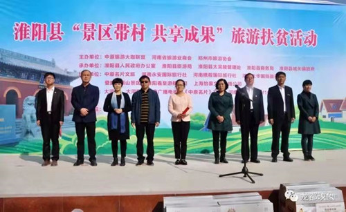 金秋時(shí)節(jié),天藍(lán)水碧。11月3日上午,“景區(qū)帶村,共享發(fā)展”旅游扶貧走進(jìn)淮陽(yáng)活動(dòng),在國(guó)家級(jí)旅游扶貧開(kāi)發(fā)村、河南省鄉(xiāng)村旅游特色村一一該縣城關(guān)鎮(zhèn)從莊行政村隆重舉行。來(lái)自河南各地市25個(gè)旅游團(tuán)隊(duì)1400余名游客參加了此次活動(dòng),河南廣播電視臺(tái)《中原名片》欄目全程直播活動(dòng)情況,直播間觀眾互動(dòng)達(dá)55萬(wàn)多人次。開(kāi)幕式上,副縣長(zhǎng)張潔致辭,縣政府辦公室駐從莊村第一書(shū)記推介從莊行政村鄉(xiāng)村旅游情況,縣旅游局與河南永安國(guó)際旅行社、河南攜程國(guó)際旅行社簽訂戰(zhàn)略合作協(xié)議。河南大華國(guó)際旅行社、河南攜程國(guó)際旅行社、上海恰豪文化傳播有限公司、中原旅游大咖聯(lián)盟等企業(yè)為從莊行政村及貧困戶捐贈(zèng)油、米、棉被等慰問(wèn)品及現(xiàn)金2萬(wàn)元。縣電商服務(wù)平臺(tái)、從莊村民展銷布老虎、泥泥狗、土雞蛋、兔子肉、干野菜等農(nóng)副手工產(chǎn)品40余樣。活動(dòng)結(jié)束后,全體游客赴龍湖國(guó)家濕地公園、太昊陵景區(qū)觀光游覽。