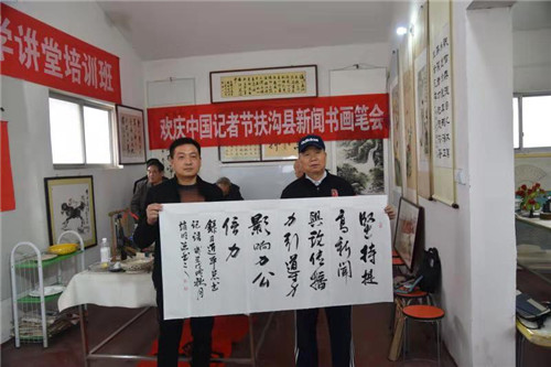 筆墨寫春秋,重彩頌佳節(jié)。為慶祝第19個(gè)中國(guó)記者節(jié),在扶溝縣的張坡詩詞名人書畫館,來自省書法家協(xié)會(huì)的書法家與當(dāng)?shù)匦侣勑麄鞑块T的書畫愛好者們齊聚一堂,以舉行書畫筆會(huì)的形式向新聞媒體人慶賀節(jié)日。