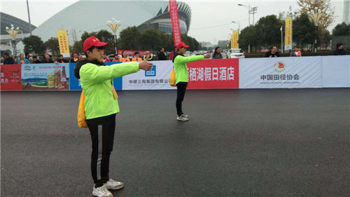 11月18日,在2018周口馬拉松暨善跑中國周口站現場,一個個身穿統一服裝的志愿者活躍在賽道之上,他們或給選手舉路線指示牌,或伸出大拇指給路過選手一個大大的“贊”,成為賽場內外一道靚麗的風景。