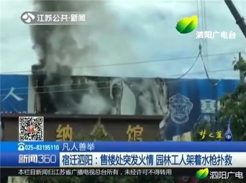9月5日上午10時(shí)許,江蘇省泗陽(yáng)縣北京東路塞納公館營(yíng)銷中心因招牌頂部電焊火星濺落,致使門頭起火。起火點(diǎn)距離地面約5米,滅火器等常用滅火設(shè)備無(wú)法起作用。為防止意外,售樓處工作人員及時(shí)疏散群眾,同時(shí)撥打119救火電話。就在此時(shí),身為泗陽(yáng)縣園林綠化管理處的技術(shù)員曹書志,正開著灑水車進(jìn)行綠化帶澆水作業(yè),見到路邊濃煙滾滾,火勢(shì)兇猛,曹書志二話不說,立刻把灑水車開到著火點(diǎn),不顧生命危險(xiǎn)下車,和其他3名工人,迅速打開前噴水頭和后部水炮供水的副發(fā)動(dòng)機(jī)進(jìn)行滅火,在持續(xù)噴射十余分鐘后成功將火撲滅。