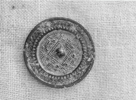 據(jù)悉,這批墓葬因埋藏較淺,均遭到嚴(yán)重破壞,出土文物大部分為器物陶片。從殘片上看主要有陶盆、耳杯、陶案、陶樽、陶罐、陶甕、銅錢(qián)、銅鏡等,其中八乳規(guī)矩鏡是這次出土的珍貴文物。