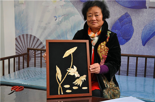 王春梅展示秸稈畫