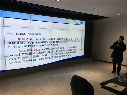11月30日上午,周口港區中心港碼頭運營辦邀請周口師范學院講師、經管物流專業博士李宗潭來到中心港碼頭,為碼頭運營辦、河南水投興洲港務公司碼頭現場全體人員培訓集裝箱業務知識。
