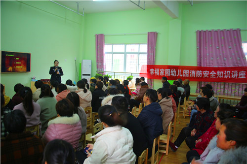 12月3日,周口港區幸福家園幼兒園舉辦消防安全知識講座,邀請學生家長到校園學習消防安全知識,與孩子們一起參與模擬逃生演練。