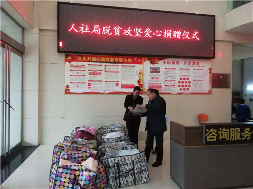 當日上午,按照局黨組的決定,人社局黨組成員、副局長王培敏進行了愛心捐贈倡議。下午3時許,以股室、中心為單位進行了現場捐贈,干部、職工捐贈熱情高漲,此次活動100多人參與,累計捐贈物品1320件,涉及棉被、棉褥、棉衣、鞋子、靴子等等,捐贈的物品清潔完整。這些愛心物資將根據貧困群眾的實際需求,進行合理調劑分發到各定點幫扶村,力爭捐贈物品能夠最大限度合理使用,確保貧困群眾能夠溫暖過冬。