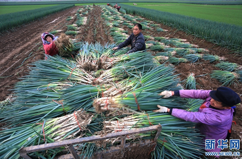 近年來,淮陽縣齊老鄉袁樓行政村大力發展特色種植,以“合作社+農戶”的形式種植大蔥4000余畝,每畝增收14000余元,帶動村里貧困人口35戶124人土地入股和就業,其中已有25戶脫貧。通過發展種植大蔥,該村從以前人均不足2000元的貧困村變成如今人均達到1萬多元的小康村。新華網發(楊正華 攝)