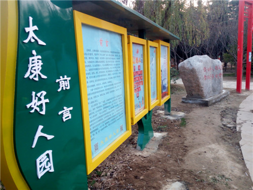 為把好人精神鐫刻在太康發展和進步的進程中,把太康建設成為好人之城、文明之城、和諧之城、美麗之城、幸福之城,從2018年9月起,太康“好人園”經過緊鑼密鼓地籌建,如今開園迎賓。好人園緊扣“好人”主題,以道德風尚建設為主線,在休閑公園的基礎上,秉承“因地制宜、因勢利導”的原則,堅持寓教于園、寓教于景、寓教于樂,以小處著手、局部微調的手法,通過“好人步道”“好人亭”“好人樹”“好人大舞臺”“好人精神長廊”五大版塊,將道德風尚高地建設與公園的整體風格和功能定位完美結合。好人園兼顧了公園本身特色與文化傳播需要,利用林蔭小道,以石、亭、牌等基礎設施為載體,圖文并茂地展示太康近年來獲得國家和省級表彰的道德典型、身邊榜樣的先進事跡,一步一景,隨景賦形。市民在游園過程中,潛移默化地接受“真、善、美”的教育和熏陶,激發人們見賢思齊,榜樣的引領作用不斷放大。