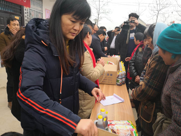 副縣長喬偉講話。商務局局長李曉紅、清集鎮常委書記吳文靜對開展本次活動的目的,意義及有關扶貧政策做了講解。活動由清集鎮鎮長許世杰主持。本次慰問給桂崗村貧困戶送來餃子300件,食用醋300件。“政府想勒真周到呀,這在以前想都不敢想,真心的感謝政府,感謝現在的好政策。”一位剛領到餃子的老黨員感動地說。