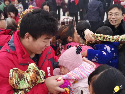 在觀看了一段歡快的舞蹈表演后,與會領導為獲獎家庭頒獎,并和志愿者們一起為孩子們戴上了圍巾,現場數百名群眾報以陣陣熱烈掌聲。