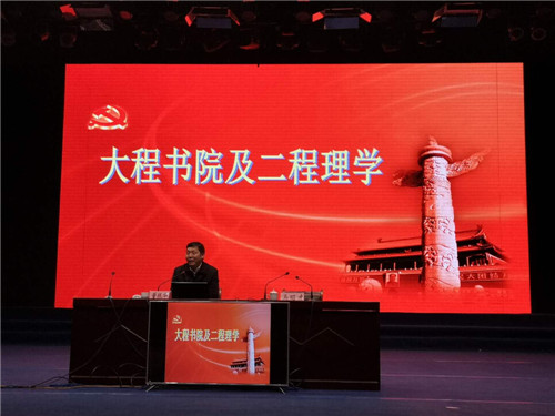 會(huì)前,與會(huì)人員首先觀看了扶溝文化宣傳片《人文扶溝》。會(huì)上,中共中央黨校哲學(xué)教研部副主任、博士生導(dǎo)師董振華教授以《大程書(shū)院及二程理學(xué)》為題,從大程書(shū)院及二程其人其事、二程思想的歷史地位、二程理學(xué)的核心要義、二程理學(xué)的當(dāng)代價(jià)值等四個(gè)方面,通過(guò)深入淺出、引人入勝的講解,把二程文化的起源發(fā)展脈絡(luò)清晰明了地展現(xiàn)在聽(tīng)眾面前。