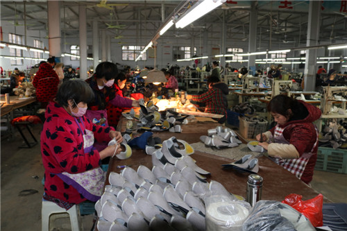 “在這里每個月可以掙3000多元,雖不如沿海城市掙的多,但從家里到廠里騎車幾分鐘就到,不影響做飯、照顧家。”秦梅英是鹿邑縣楊湖口鎮超琪鞋業扶貧車間對口幫扶貧困戶,因兩個孩子小再加上丈夫兩年前得抑郁癥需要照顧,所以不能外出務工,因此格外珍惜家門口這份工作。
