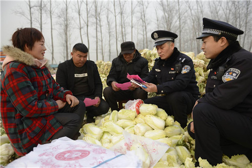 歲末年初正是電信詐騙、入室盜竊等各類侵財案件高發(fā)期。為提高群眾的治安防范意識,連日來,扶溝縣公安局呂潭派出所民警來到田間地頭,為農戶講解治安防范知識,幫助農戶提高識別電信詐騙技能。圖為12月25日,民警正在為菜農解答電信詐騙防范疑難問題。