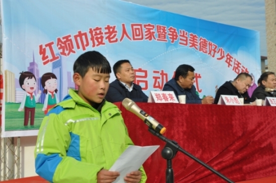 12月29日下午,在商水縣姚集鎮(zhèn)舉行的“紅領巾接老人回家暨爭當美德好少年”活動 啟動儀式上,姚集鎮(zhèn)盧廟小學六年級學生張吉慶用幼稚童音朗誦的《用愛接爺爺奶奶 回家》,感動了在場的來自各鄉(xiāng)鎮(zhèn)的數(shù)百名鄉(xiāng)村干部。“孩子講的好,我們一定配合 鄉(xiāng)政府把獨居老人戶清零工作做好做實,讓老人們年年過暖冬。”湯莊鄉(xiāng)中心校長戚 二中會后告訴記者。