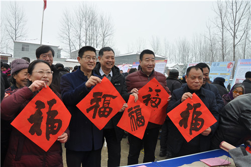 1月10日上午,雪花飛舞,天寒地凍。然而,商水縣袁老鄉(xiāng)王屯行政村文化大院暖 意融融,千人歡聚,同樂同慶,共享黨的溫暖。由縣委宣傳部、縣文明辦、縣文廣局 等部門聯(lián)合舉辦的商水縣2019年文化、科技、衛(wèi)生“三下鄉(xiāng)”啟動儀式在這里舉行。