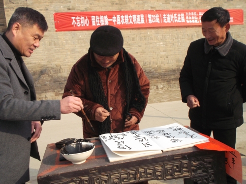 鄧城鎮(zhèn)范莊村72歲的范長(zhǎng)印老人觀展后感觸頗深地說(shuō):“這些展品我很多都見(jiàn)過(guò)、用過(guò),不過(guò)用起來(lái)真費(fèi)勁真受罪啊!現(xiàn)在農(nóng)忙季節(jié)機(jī)器一響,糧食嘩啦啦就進(jìn)家了。我這個(gè)年齡的人最能體會(huì)到咱們國(guó)家的進(jìn)步和社會(huì)的美好!”隨后,老人在留言薄上用握慣農(nóng)具的粗糙大手握起毛筆寫(xiě)下了“新時(shí)代,得民心”幾個(gè)字。字雖不工整但他的滿腔真情感動(dòng)了在場(chǎng)的群眾,大家把熱烈的掌聲送給范長(zhǎng)印老人。
