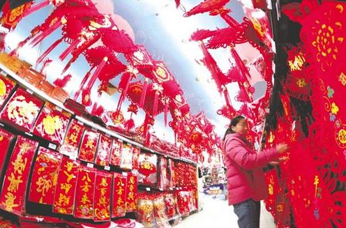 記者近日采訪看到,周口的年貨市場已經(jīng)開啟,年畫市場最先吹起紅火的節(jié)日風(fēng),紅彤彤的對聯(lián)、中國結(jié)等被商家掛滿店鋪,吸引客人上門。記者 梁照曾 攝