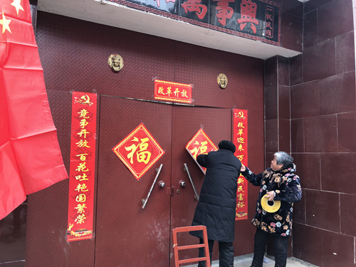 據了解,當天下午時莊村黨支部訂制的3000多套春聯,免費贈給448戶村民。記者看到,這些春聯的內容都是承載著黨和政府的關懷,有的是歌頌改革開放的,有的是幸福報黨恩的。該村村民朱在靈領到春聯后立刻把春聯拿回家,他將門頭擦干凈后把春聯貼了上去。在門口懸掛著的國旗的襯托下,顯得格外喜慶。“村里免費發這種帶黨徽的春聯已經第三年了,這種春聯傳遞了黨的好聲音,推動了群眾對黨的擁護,現在村民的精神面貌也貌煥然一新。”朱在靈高興地說。