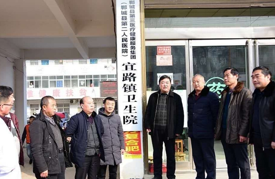 在宜路衛生院,副組長劉廷亮主持揭牌儀式。晉繼忠與宜路衛生院院長劉峰為第三醫療健康服務集團(鄲城縣第二人民醫院)宜路鎮衛生院揭牌。