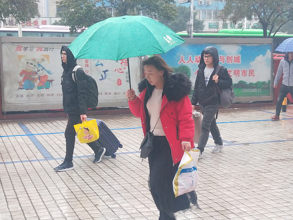 1月30日,農歷臘月二十五,上午下起了大雨,在周口汽車客運總站,一些從外地返鄉的乘客加快了回家過年的步伐。