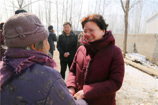 2018年5月11日,張穎波在看望大新鎮陳樓村的困難群眾吳鳳蓮時,曾對她說過一句話,“等你新房蓋好,我再來看你。”76歲的吳鳳蓮把這句話牢牢地記在了心里。一見張穎波的面,拉著手留著淚連聲說:“俺家房早就蓋好了,就一直盼著恁來。我知道恁忙,可就想讓恁看看俺的房……”老人和一位患病的兒子一起生活,去年5月份張穎波來時,她家正因“危房清零”活動而扒掉舊房蓋新房。張穎波當時還特意滿足了老人的一個愿望,安排村干部為她家房內專門壘個隔斷。“我70多了,從來沒住過這么好的房、從來沒過過這么好的日子!”新建的三間磚瓦房、一間配套齊全的廚房和壘好的院墻讓老人感慨不已,發自肺腑地說著黨和政府的好。“老人家,我今天就是想看看房子改造的怎樣,也給你拜個早年。”張穎波拉著吳鳳蓮老人的手說:“房子蓋好了,也算了了你的一個心愿,有黨和政府的幫助,日子會越來越好。你要照顧好自己和孩子,有啥困難就找村里干部。”