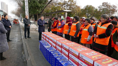 慰問(wèn)中,皇甫立新、劉國(guó)慶一行首先來(lái)到新區(qū)“三公開(kāi)”廣場(chǎng),慰問(wèn)堅(jiān)守一線(xiàn)的環(huán)衛(wèi)工人,向他們致以新春的祝福,并對(duì)他們?cè)谶^(guò)去一年里付出的辛勤勞動(dòng)表示衷心感謝?;矢α⑿轮赋觯荒陙?lái),環(huán)衛(wèi)工人們起早貪黑、兢兢業(yè)業(yè),為改善居民生活環(huán)境和提升城市形象付出很多心血和汗水,取得了良好效果,城區(qū)環(huán)境和城市面貌有了很大改善,得到了社會(huì)各界的一致好評(píng),希望環(huán)衛(wèi)工人們?cè)诖汗?jié)期間繼續(xù)發(fā)揚(yáng)奉獻(xiàn)精神,把縣城衛(wèi)生打造的更加干凈、整潔,讓廣大市民和回家過(guò)年的群眾能深刻感受到縣城環(huán)境的新變化,過(guò)一個(gè)干凈舒適愉快的春節(jié)。